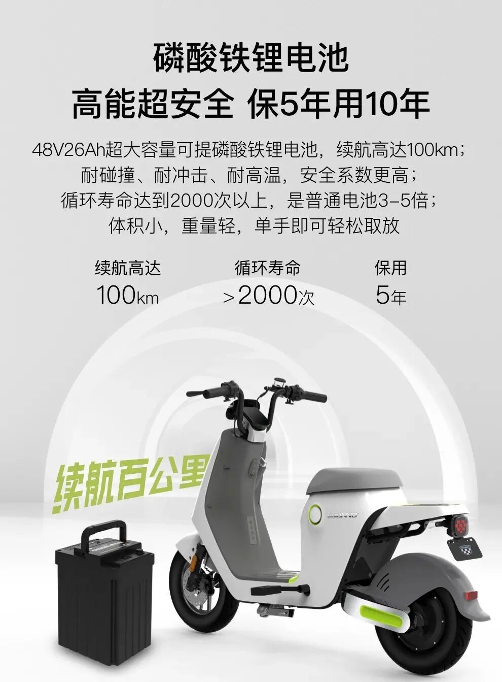 尤为值得一提的是INNO7的续航性能,搭载48V26Ah汽车级磷酸铁锂电池,超2000次循环寿命,实测续航里程达110公里!以新国标车型类比,这绝对是一个领先行业的续航高度。并且INNO7锂电池还质保5年,以每周充电2-3次的化可以用10年。