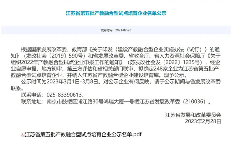 日前,江苏省第五批产教融合型试点培育企业名单公示,开发区企业徐州冠华机械制造有限公司成功上榜。