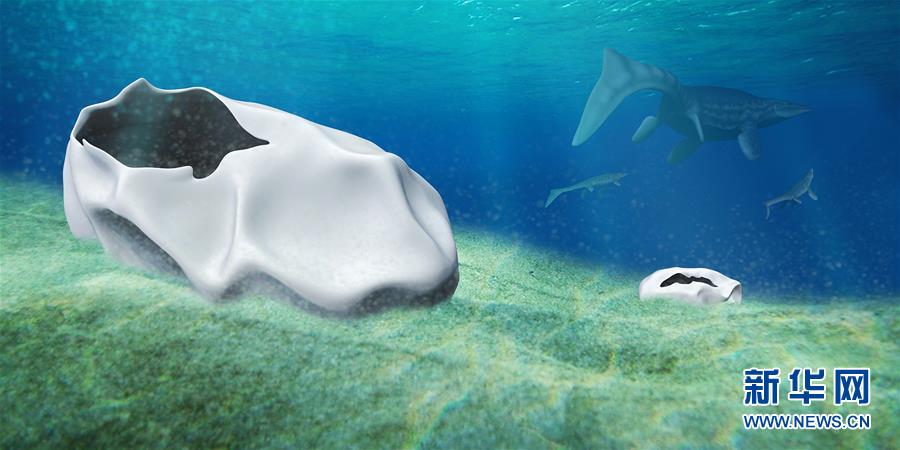 这是插画师弗朗西斯科·维伊查莱奥根据智利和美国科学家的研究成果重建的海洋爬行动物沧龙产卵孵化出幼崽的情景。 由智利和美国科学家联合开展、日前发表在英国《自然》杂志上的一项研究确认,一块2011年在南极洲发现的化石是白垩纪“海洋霸主”沧龙的蛋化石。 新华社发 文字报道: 科学家确认白垩纪“海洋霸主”沧龙的蛋化石