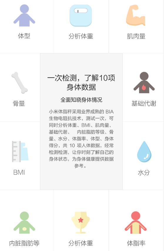 自然地,智能体脂秤扮演了健康生活管理的硬件入口。做体脂秤起家的有品CEO张悦曾在采访中表示,“有品这家公司以后不是一个智能硬件公司,硬件只是一个承载体,它更多是围绕着把用户的多维度体能数据连接到云端以后来做文章,这些体能数据是具备相关性的,你如何个性化地匹配给用户,这是最重要的。”