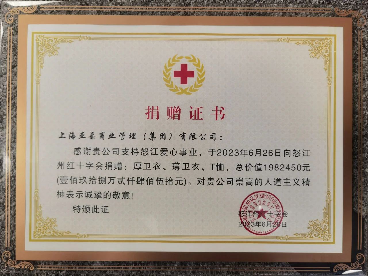 6月,亚朵集团迎来10周年司庆之际,亚朵又向怒江州红十字会捐赠了一批价值近200万的衣物物资,并将其中一部分物资定向捐赠给了亚朵村,让每个亚朵村的村民都能穿上来自亚朵集团的新衣服。