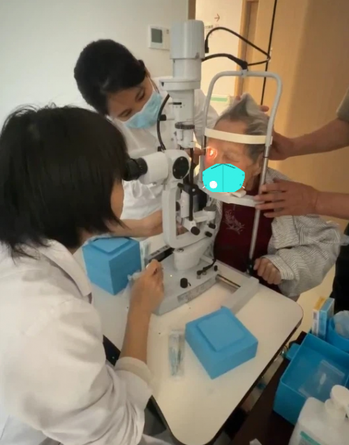 齐卫主任接诊后,为苑奶奶进行了全面检查。由于老人听力严重下降(耳背),医患沟通与指令配合存在不小挑战。全面评估后发现,病情极为复杂:老人白内障已进展至晚期,晶体核呈棕褐色硬核、质地坚硬,混浊的晶体完全遮挡视线,使得眼底状况难以预判。加之94岁高龄带来的身体机能整体衰退,手术风险显著增加。