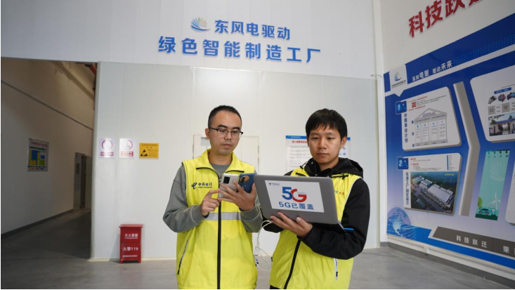 电信人员在襄阳东风电驱动智慧工厂调测5G网络