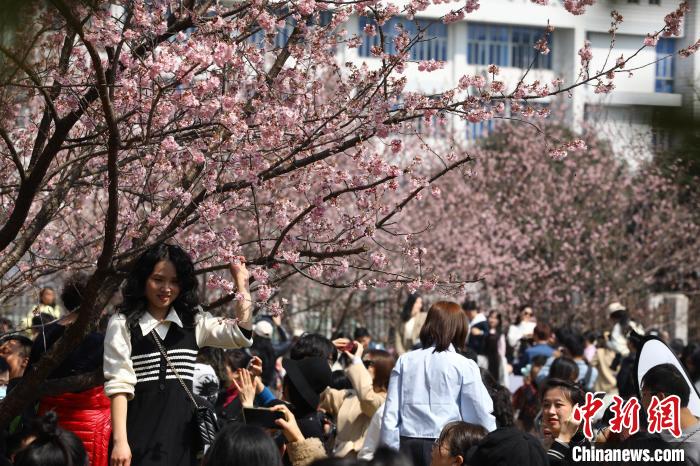 武汉大学早樱吸引游客拍照打卡。张畅摄