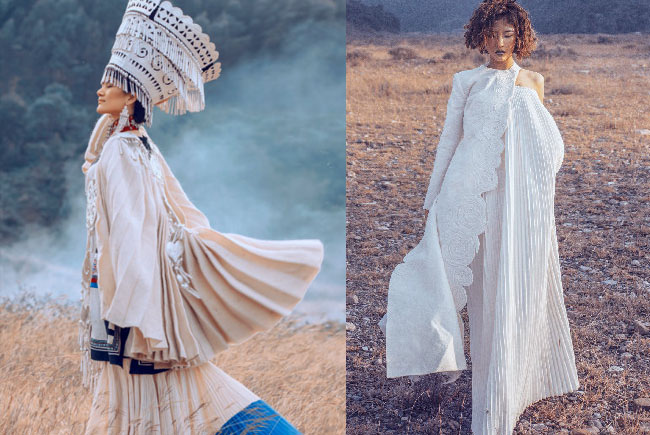 据了解,“云梦彝山”时尚部分整个系列共有33套服饰造型,设计灵感来自彝人生活环境中的连绵群山,以及凉山彝族盛行千年的羊毛制品——加诗瓦拉。