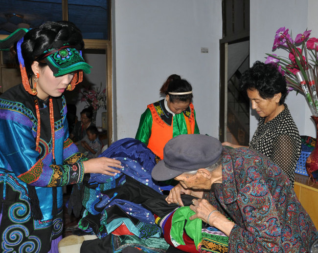 随着民族间交流的频繁和时尚浪潮的冲击,彝族服饰正在被大众的日常便服所取代,学习服装制作这门手艺的人越来越少。为了不让这弥足珍贵的技艺消失,阿牛阿呷早在2004年就开始在全国彝区对彝族服饰进行深度调研和细致整理,收集彝族传统服饰,为这些宝贵的遗存整理建档。