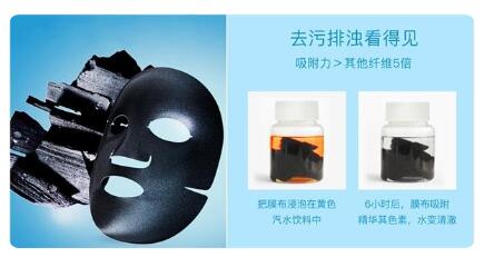瓷妆复活草屏障修护面膜采用量子级活性炭黑膜,比普通竹炭黑膜贴肤性更佳,且轻薄舒适,敷感清新舒爽,其吸附力是纤维膜布的5倍。研究证明,把量子级活性炭黑膜放置高浓度的污水中,6小时内即达到完全的净化污水效果。