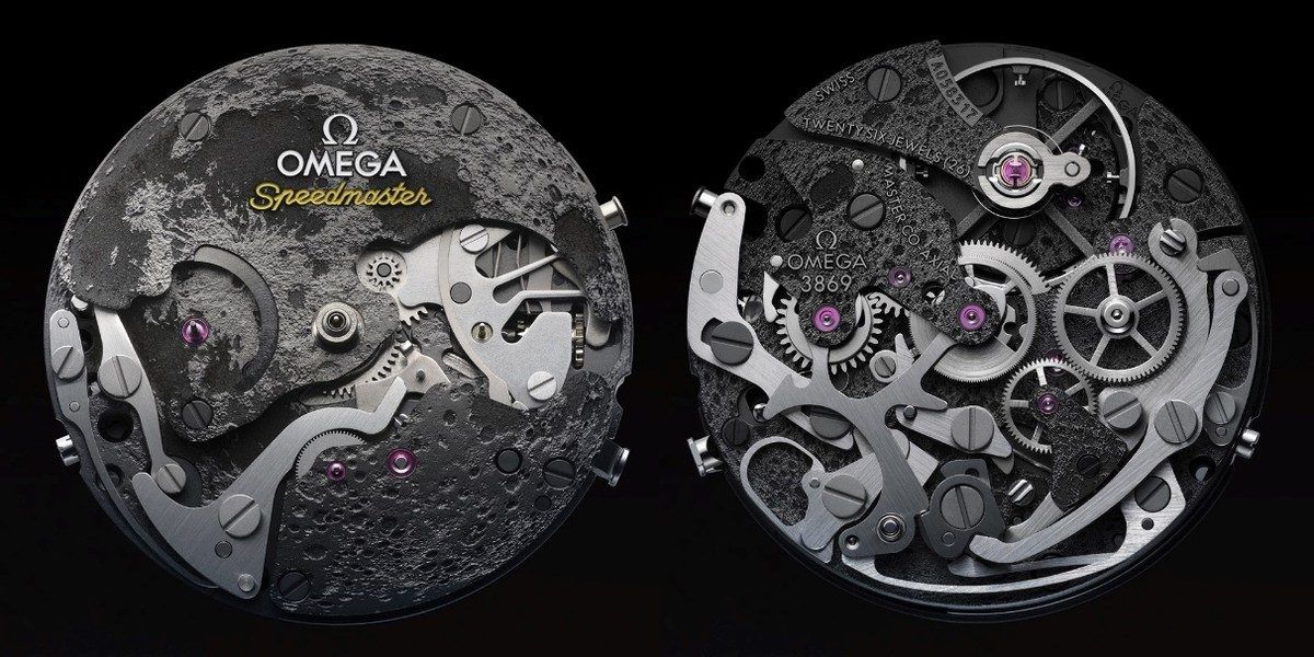 手表的开放式表盘完整呈现机芯正面夹板——通过激光烧蚀工艺浮雕出月球正面环形山等地表特征,翻转至表背则呈现出阿波罗8号宇航员看到的「月之暗面」,新版雕刻图案更为细腻立体,尤其是月表灰色的起伏地貌刻画极具层次。