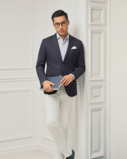 初夏温差大,备上一件正装外套,能轻松展现职场多元化搭配的美感。金利来2024春夏上新的清逸蓝系单西为这个夏天呈现清爽不凡的气质,轻薄透气的舒适感,沉稳优雅的经典平驳领,配搭白色POLO领长袖,碰撞出职场精英优雅又随性的风格。修身版型的剪裁可以消化各类身材,上身一整个型格气质拉满,气场全开。