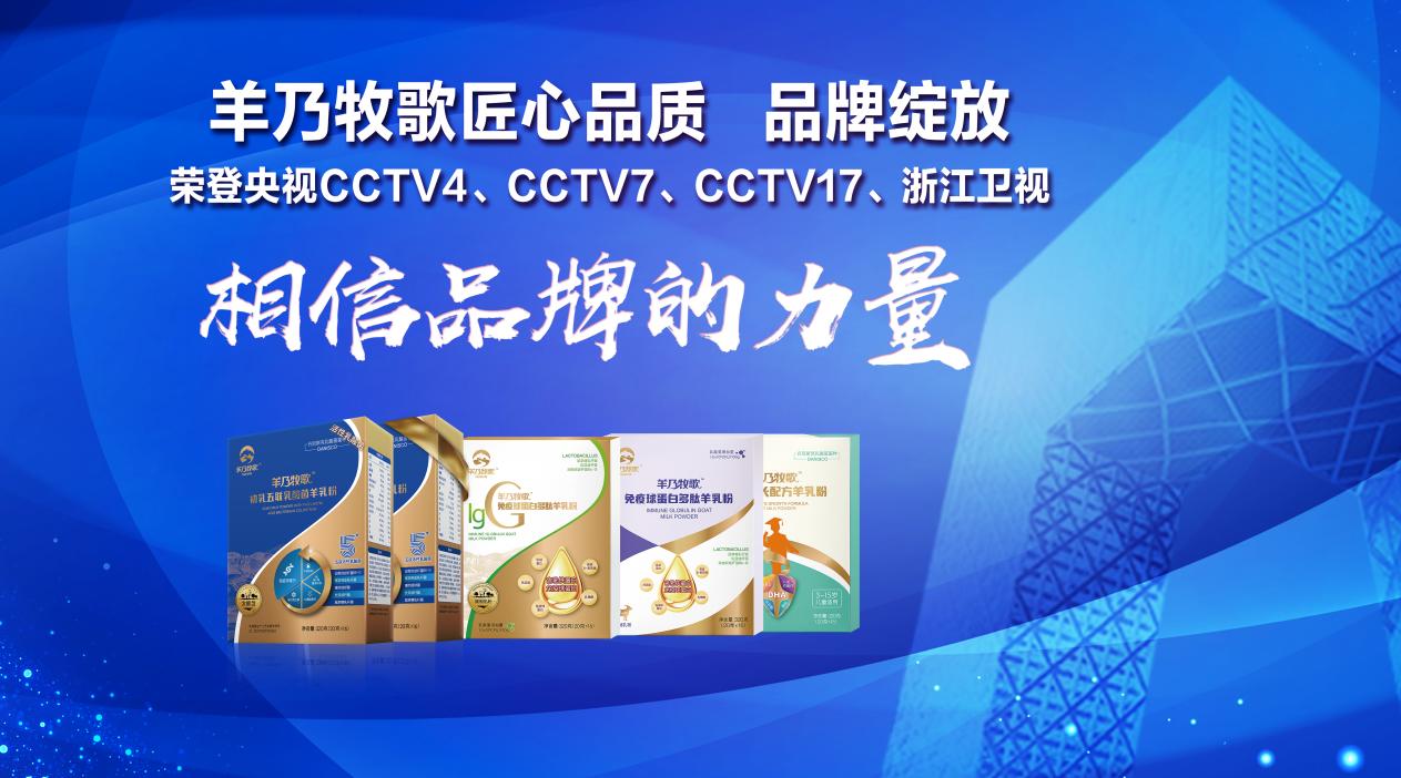 2021年7月26日起,羊乃牧歌羊乳粉品牌广告强势登陆中央电视台CCTV4、CCTV7、CCTV17、浙江卫视四大黄金热门频道。