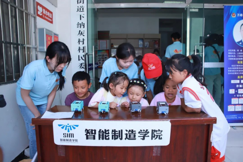 一是沉浸式科普体验升级。在纳灰村、新市民第二小学,集中投放学院优势设备资源,开展无人机编程操控、机器狗指令响应、足球无人机竞技等活动,让500余名山区儿童深度沉浸于智能制造前沿技术,有效跨越数字鸿沟。