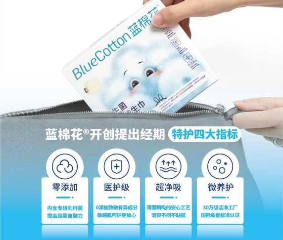 蓝棉花,作为新生代卫生巾品牌,从诞生之际就以“呵护中国女性经期健康”为使命。蓝棉花联合创始人表示:作为超千亿规模的女性卫生用品市场,本该通过不断的产品创新提高产品质量、增加产品的易用性、安全性,不仅解决卫生护理问题,更应该解决女性经期健康问题,从而为女性排忧解难。但在白热化的市场竞争中,人们似乎停止了前进的步伐。