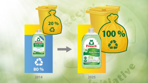 2025年内:Frosch品牌 rPET瓶将100%采用黄袋回收系统原料,将灰色回收料应用于瓶盖,闭合PP材料循环,以实现该材料的高质回收。