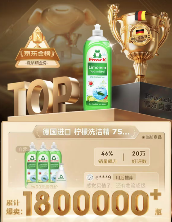 中国家清市场的口碑信赖:Frosch柠檬洗洁精荣登京东洗洁精金榜