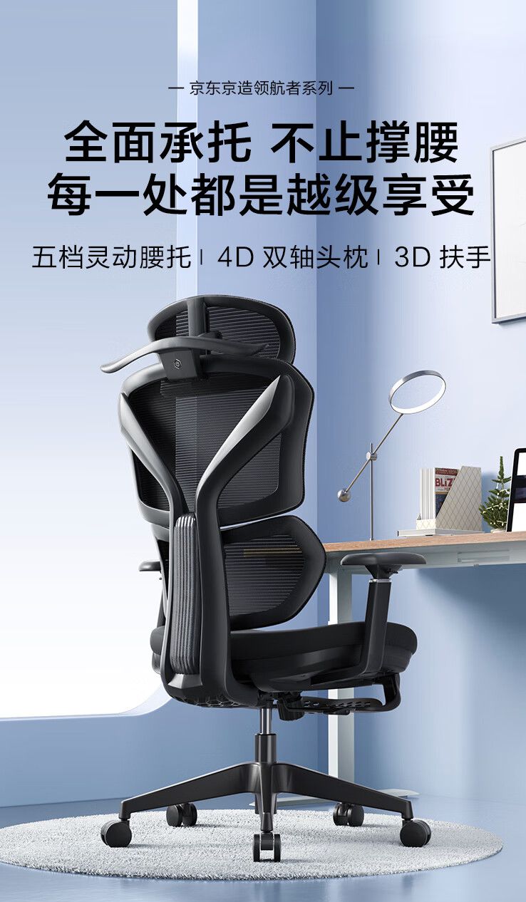 据悉,这款产品从开发到落地历时两年,收集了1400位用户的核心支撑区数据,并根据不同用户的个性化坐姿习惯进行分析,精心打造而成。无论是5档灵动腰托、4D双轴头枕、3D扶手、云感舒压坐垫等功能设计,还是产品上线前数万次极限检测,都体现了京东京造对产品功能与细节品质的极致把控。