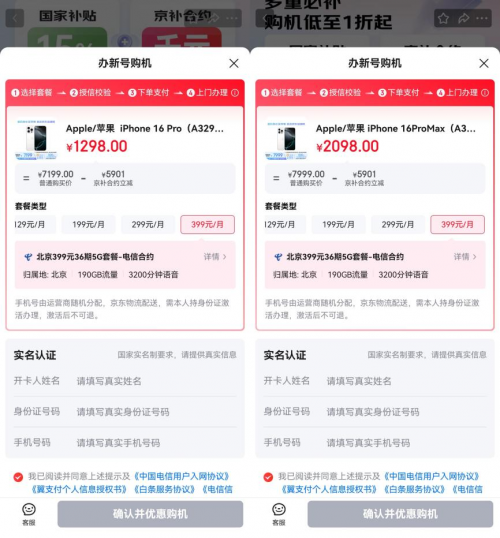 消费者到京东APP搜索“京补合约”进入活动会场,选择想要购买的产品,点击立即优惠购机,选择话费套餐,输入身份信息,勾选办理协议,就能下单享受补贴了。线上点几下完成下单后,京东快递小哥将上门协助消费者完成信息核验和套餐激活等流程,一站式搞定3C数码产品、新号卡、新套餐,足不出户就能省钱购机。下面一起来看看有哪些3C数码好物可用“京补合约”入手吧。