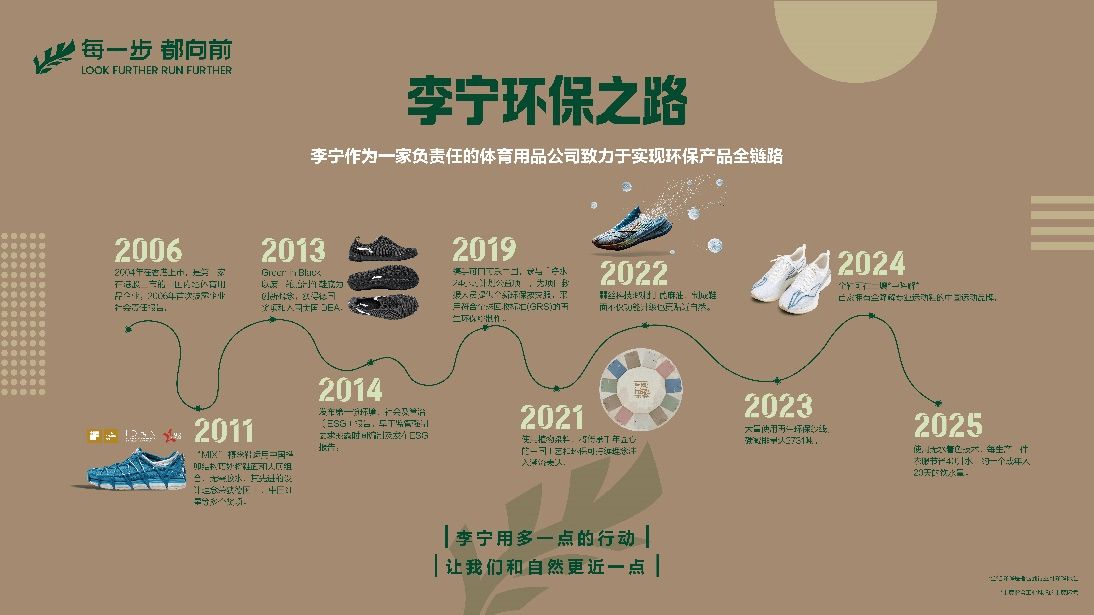 多年来,李宁从原料、工艺、回收再利用、生态循环四个环节出发,致力构建环保产品“全链路”,依托技术创新,逐步实现环保理念在四个环节的落实与深化,推动绿色生活方式走入消费者的运动生活,秉持“每一步,都向前”理念,助力行业可持续发展。