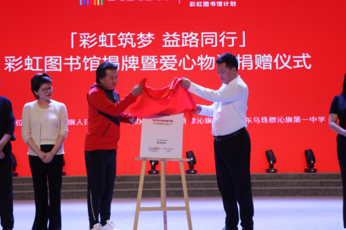 当日上午9时许,彩虹图书馆相关捐赠人员,赴旗第一中学报告厅开展彩虹图书馆揭牌暨爱心物资捐赠仪式。