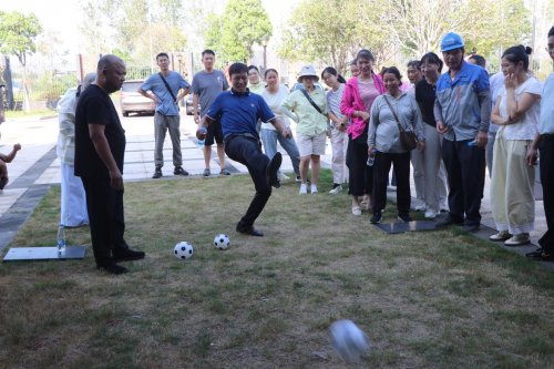 个人项目同样精彩纷呈。“踢球比赛”中,选手站在规定位置瞄准球门,足球飞向球门不同区域,现场分数不断刷新,每次精准命中都迎来现场一阵欢呼。“运水比赛”的选手们则用乒乓球拍托住一瓶瓶口朝下的矿泉水,稳健疾行。大家各显神通,有的稳扎稳打,有的快步流星,顺利抵达终点的选手用实力证明了平衡感与专注力,让观众感受到竞技乐趣。