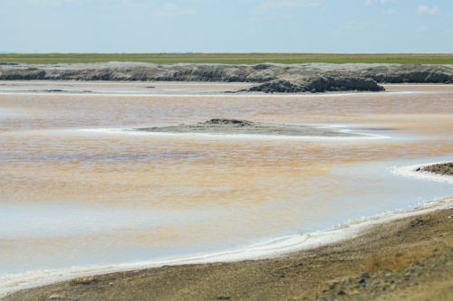 内蒙古额吉淖尔制盐有限公司依湖建设盐田100万平方米,阳光穿过蓝天洒在盐田上,恰似游龙戏浪,若隐若现,随着季节的变化,盐田七彩斑斓,微风掠过,湖波荡漾,美不胜收。