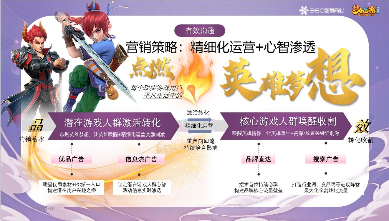梦幻西游网页版依托360PC端流量优势,通过360大数据分析用户属性,利用DMP人群管家锁定各层级用户群体,针对不同圈层用户制定独有媒体资源打法。将资源属性与人群特征紧密结合,用多样化创意资源配合360优势传播矩阵“沟通渗透”意向用户,“实力抢占”核心用户,“全面覆盖”品牌认知用户。360智慧商业助力梦幻西游网页版实现品效合一、降本增效的目标,最终达成高转化,远超客户预期。