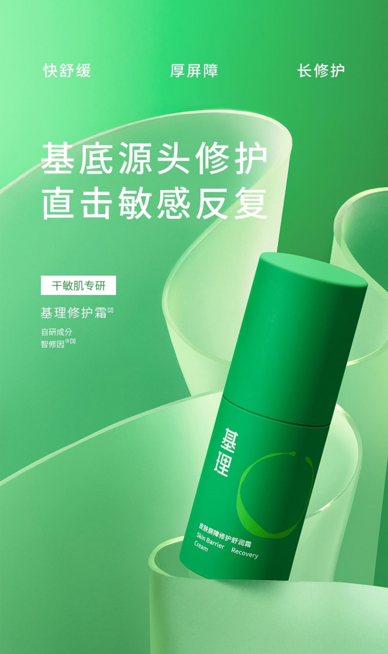 目前,基理已将重组人源化纤连蛋白作为核心成分添加进产品线中,首款定位干敏肌修护的产品——基理修护霜也已上市销售,为敏感肌消费者提供了更多的护肤选择。