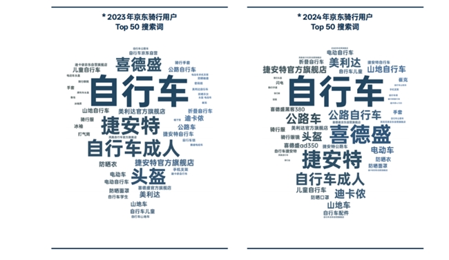 《报告》显示,线上自行车销售规模逐年增长,已经成为骑行爱好者购买自行车及相关配件的主要渠道之一。京东线上数据显示,2024年,高端公路车成交额同比增长240%,专业骑行服成交额同比增长280%,骑行眼镜、锁鞋等穿戴装备的成交额涨幅均超过120%。而在具体品类上,公路车规模稳居榜首,而喜德盛接连占据公路车和山地车两大车型的销售额榜首。