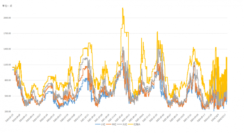 图3 不同规格红虾价格走势(单位:点)