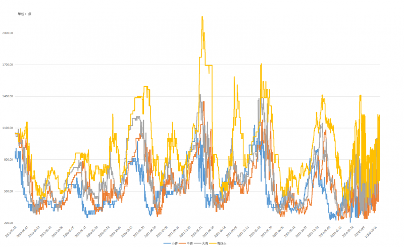 图4不同规格青虾价格走势(单位:点)
