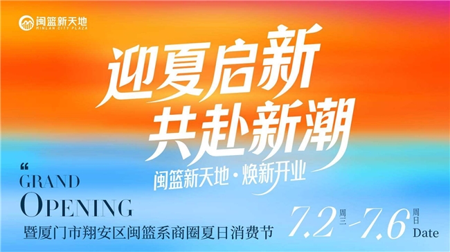 为回馈翔安市民,7月2日-7月6日,闽篮新天地将奉上“开业三重奏”+七大主题活动季,打造盛夏消费狂欢!7月2日-4日 每晚20:05,在商场1号门大舞台进行万元锦鲤抽奖,送出品牌电动车、超市千元购物卡、霸王餐大礼包等;会员注册即送甜筒;7月1日-31日,横跨商场五大展区举办恐龙IP互动展;7月2日-6日在地铁口空地火热上演马戏团艺术节 & 美食嘉年华;7月2日-4日举办青春不散场毕业季歌会;7月5日举办次元宅舞大赛 & Coser走秀活动;