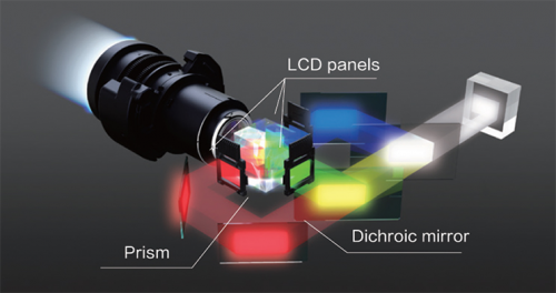 爱普生自主研发的3LCD核心技术拥有出色的色彩表现力、高效的光源利用率以及广泛的应用场景。这项技术基于纯粹的光学原理,构建了一套精妙的色彩演绎体系:一束白色光源通过投影机内的分色镜分解成红、绿、蓝三色光线,分别经由独立的LCD面板进行精确调制,再经由专用的棱镜将三个独立的基色图像精准地合成为一幅完整的全彩图像。这种实时全彩成像机制,赋予3LCD技术独特的优势——色彩亮度等于白色亮度,画面更加清晰亮丽,色阶过渡细腻自然,且无频闪、无彩虹现象。