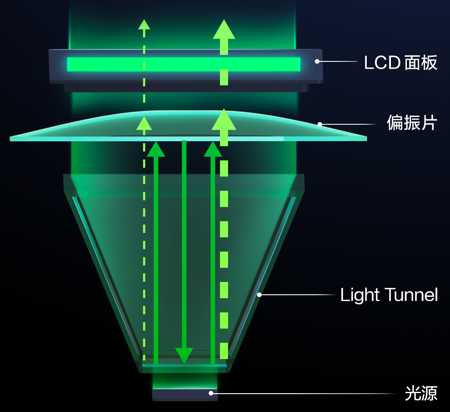爱普生采用自主研发的六轴机械自动化生产装置,以微米级精度实现了光源与Light Tunnel中心位置的精准对齐,让光线能够100%进入Light Tunnel,使光线利用更高效,也为优质的画面奠定坚实的基础。以Light Tunnel为核心,爱普生构建起一套精密且高效的三阶段光能循环利用系统:通过重新整合光线角度和计算光线的反射路径,设计Light Tunnel 最理想的几何形状,从而将原本分散的光线高效整合为高度集中的光束,大幅提升光能利用率;继而通过准直透镜,将杂乱的光线垂直穿透LCD面板,这一过程不仅确保了光线传输的稳定性,更实现了高达97.3%*1的显示亮度均匀性;而光能循环利用系统对P偏振光的循环利用,又带来30%的亮度提升,让投影画面在亮度上实现了质的飞跃。同时,爱普生工程师团队还以“少即是多”的设计理念,将零部件数量从29个精简至9个,在体积缩减40%的同时,将亮度损失控制在惊人的1%以内。