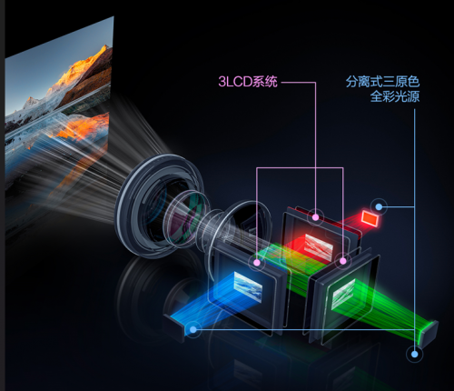 为了带给用户更卓越的观影体验,爱普生基于 3LCD的技术优势,全新研发出 “三芯三色全彩引擎”(Triple Core Engine)投影技术,采用“三芯片 + 三色光源” 架构,将红、绿、蓝三光源分别精准对齐 3 片0.62“LCD 面板,跳过了传统单色光源分光的环节,并通过精准控光、光能循环和结构优化三大核心升级,将光的利用率推向全新高度,重新定义了投影画质的新标准。