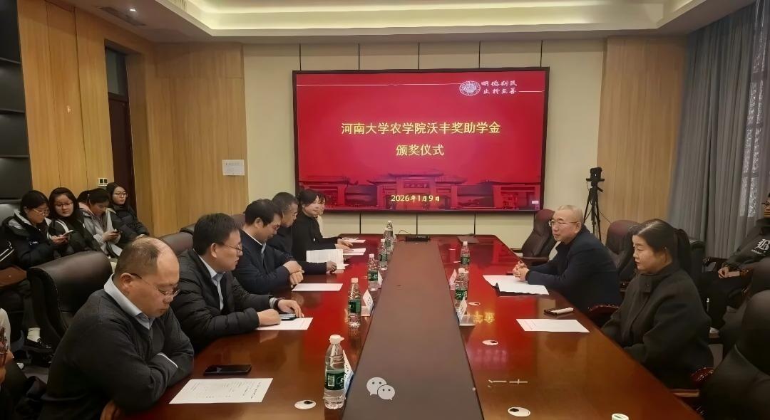 1月9日下午,河南大学农学院“沃丰奖”助学金颁奖仪式在龙子湖校区隆重举行。河南沃丰农业开发有限公司总经理刘贯军、副... 2026-01-12 10:11:02