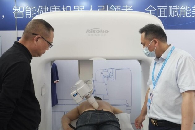 来自河南郑州的赵先生是某中医理疗馆的馆长,他边体验边从治疗及疼痛管理维度分析机器人按摩力度、按摩深度、射频医疗热度等方面和传统人工设备的差异。“力度比人手按摩更加有力到位,不像人手按摩时间长了力度变小。按摩头是热的,特别舒服,感觉和人手按摩一样。按摩穴位和部位也很到位,整体感受挺好的。这样的设备,完全替代了按摩师,还可以学习高级技师的手法,将高级技师解放出来,以后不用再雇员工了”。