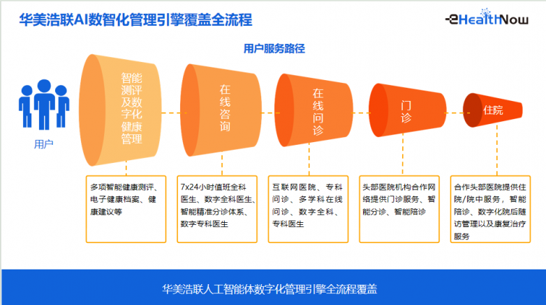 AI 技术深度应用:自主研发 AI 全科医生、医生助手、精准就医、本草中医宝等多款智能工具,借助大数据分析与智能诊断辅助,使医疗服务效率提升 50-80%,用户健康管理覆盖率翻倍;以人工智能“Dr.Hua华医生”为核心,将个性化人工智能与真实医疗服务相融合,实现从虚拟咨询建议到真实世界突破性医疗服务体验的闭环。