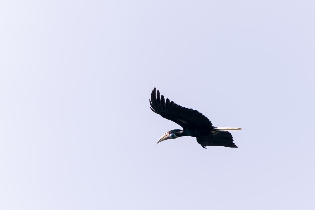 2月7日,花冠皱盔犀鸟飞过盈江县太平镇石梯村上空。