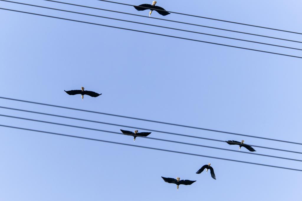 2月7日,犀鸟飞过盈江县太平镇石梯村上空。