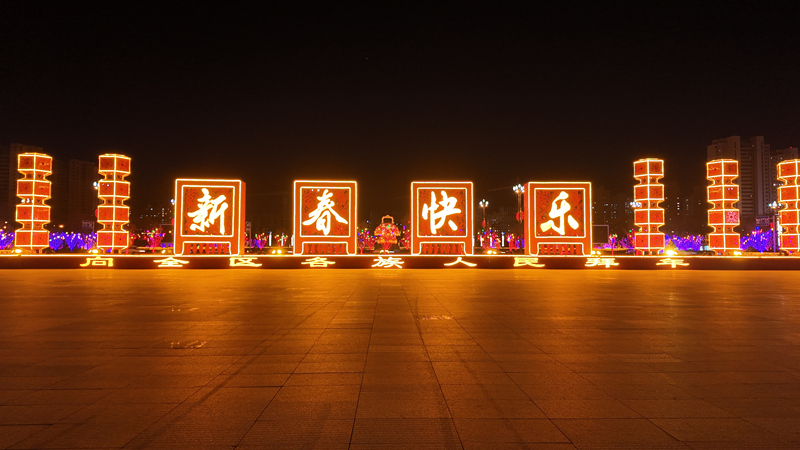 春节前夕,赤峰玉龙广场灯光布置。新华网 刘娜 摄