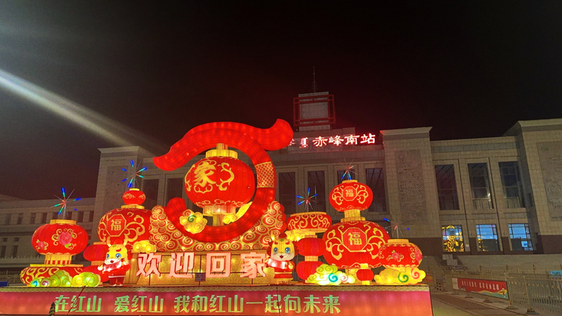 赤峰街头“团圆”“归途”主题灯牌。新华网 刘娜 摄