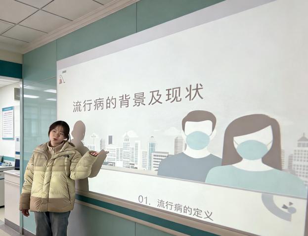 当日下午,“健康同路人”团队在八卦洲社区医院会议室开展流行病知识宣讲会,成员结合生动的PPT与案例,围绕秋冬季高发的流感、肺炎、支原体感染三大疾病展开讲解,重点介绍了疾病的传播途径、典型症状及预防措施。