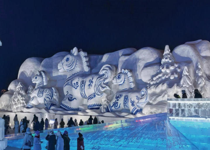 图为青花瓷系列马主题雪雕吸引众多游客观看。 本报讯(记者闫利文/摄)随着马年春节脚步临近,第二十七届哈尔... 2026-01-19 10:31:41