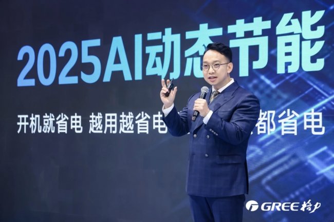 朱磊:每当一个新的技术概念出来,大家都会蜂拥而至,现在家博会现场,不讲Ai都不好意思进来,但格力在去年就已经发布了第一代Ai动态节能技术,这一技术能让市面上的同类产品效能提高20%以上,格力同一款产品,开Ai和不开Ai,节能效果对比能达到13.6%,这是我们实际测算的结果。