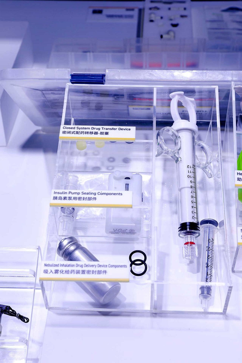 • 在精密流体控制领域,派克汉尼汾集中呈现四款本地化明星产品,覆盖医疗器械与分析设备在气路通断、压力校准和精密流量控制等方面的核心需求。Series 11电磁阀具备响应迅速、结构坚固等特点,并提供两通、三通配置选择;VSO MAX HP大流量比例阀可实现高流量气路的精准调节,为呼吸和麻醉类设备提供更稳定的供气控制;VSO NC/LOW FLOW微型比例阀适用于中低流量气路调节,并配备温度补偿功能;X-Valve微型电磁阀则以紧凑轻量、低功耗等优势,为便携式设备设计提供更多可能。上述产品凭借高可靠性和长寿命表现,可有效降低系统维护成本与停机风险,提升设备运行稳定性。 • 在密封产品方面,派克汉尼汾展示了面向胰岛素泵、真空采血塞、留置针等临床应用场景的本地化解决方案。这些方案采用专属医用高分子橡胶材料,能够更精准匹配不同应用需求,兼具稳定的理化性能与良好的生物相容性,并采用医疗十万级洁净包装,满足医疗行业对安全性与合规性的严格要求。其中,适用于微创穿刺器的密封瓣膜成为现场关注焦点。该产品具有较强抗撕裂性能和孔位自愈能力,可在器械进出过程中保持良好的动态密封效果,有助于减少漏气漏液,维持气腹稳定和手术视野清晰,为微创手术提供更可靠保障。