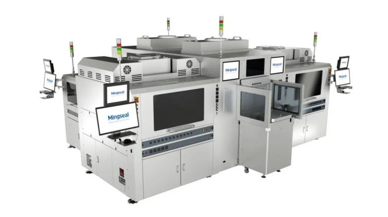 铭赛科技SS300高精度Panel级点胶系统,专为FoPLP Underfill工艺需求开发,具备优异的精度和效率。支持标准600*600mm/515*510mm以内的面板尺寸。单台设备可实现四阀同时作业,效率提升3.7倍;支持四阀同步带插补作业与独立作业模式。抗翘曲能力高达10mm,有效解决Void或Flowmark问题。智能胶水控制算法,确保胶量动态平衡,配备智能补胶系统。丰富的工艺模块,四点校正、针头挂胶检测等,提升作业稳定性。支持OHT/AGV/RGV/PGV,符合AMHS自动化工厂趋势,且符合SEMI S2和SEMI STANDARD 3D20标准。