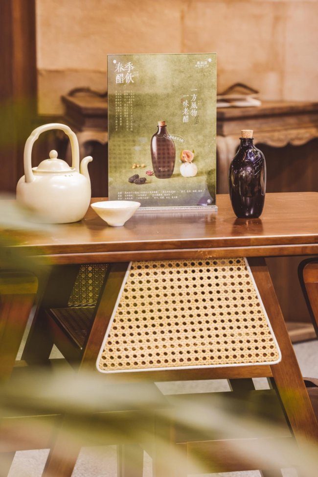 半个多世纪以来,美和居在延续传统酿造工艺的同时,持续探索老醋与当代生活的结合方式。本次糖酒会上,品牌以「一方风物·一味老醋」为主题,将山西各地的时令养生食材与老醋结合,推出四季醋饮系列。