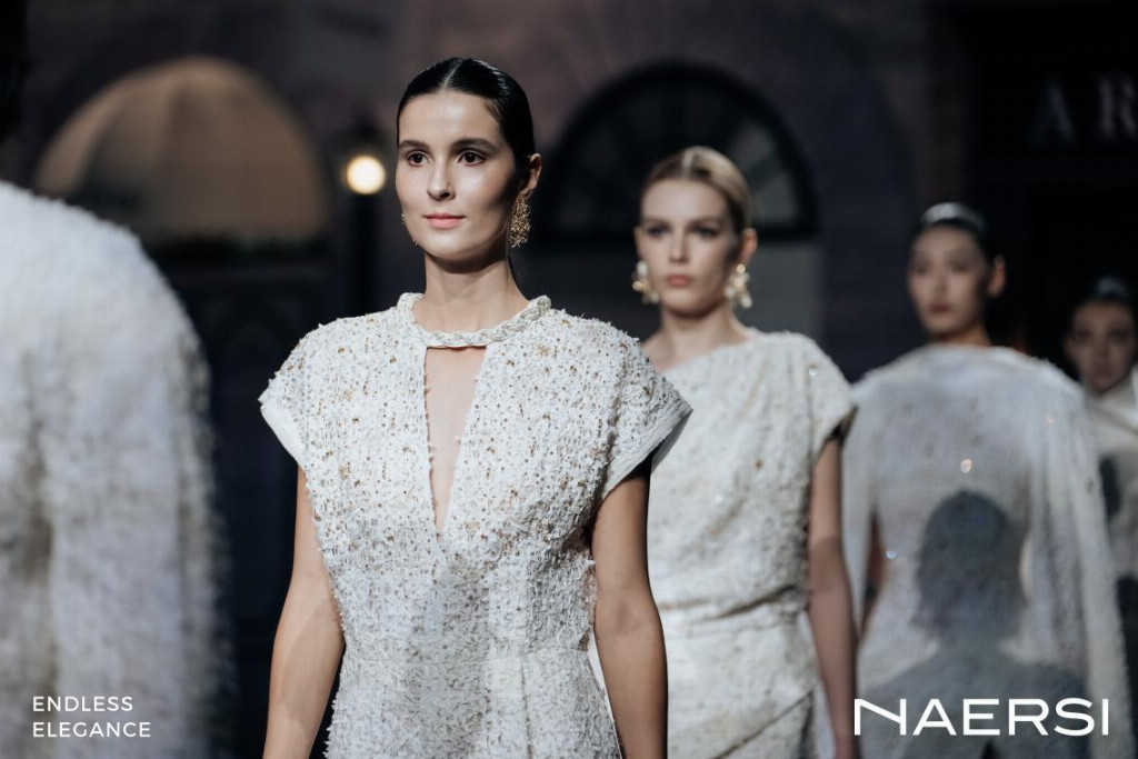 在工艺呈现上,NAERSI以佛罗伦萨的百年徽记“百合”为灵感,糅合西方古典美学与东方优雅意境,重磅推出佛罗伦萨Merletto丝绣工艺系列等时装臻作。通过佛罗伦萨针绣、艺术镂空、立体格艺等细腻笔触,NAERSI将31年品牌积淀与西方顶级匠艺深度融合。大秀特设的优雅工坊静态展区,以经典工艺区、非遗匠艺区、优雅精神区三重维度,构建从技艺到精神的完整叙事,让宾客得以近距离感受高级时装背后的匠心传承。这既是NAERSI对品牌初心的坚守,也是其在赢家时尚集团引领下,对中国乃至全球高端女装未来发展路径的深刻思考与生动诠释。
