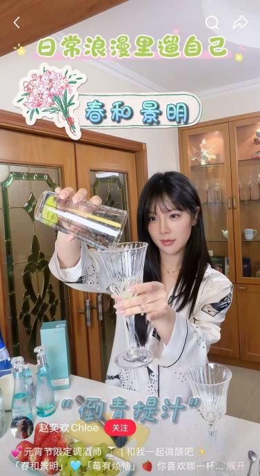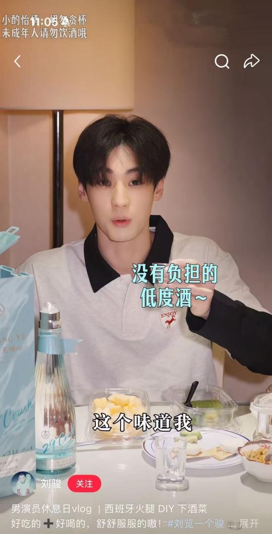 不止刘骏的日常 Vlog,朱正廷迎来 30 岁生日时,在生日主题照中与好友一起喝的是一见倾心,氛围感一整个拉满;还有之前刷到向涵之在快问快答视频里,游戏玩输了喝的也是五粮液一见倾心;还有赵奕欢元宵节用五粮液一见倾心调的【春和景明】和【莓有烦恼】,看起来就很好喝的样子。