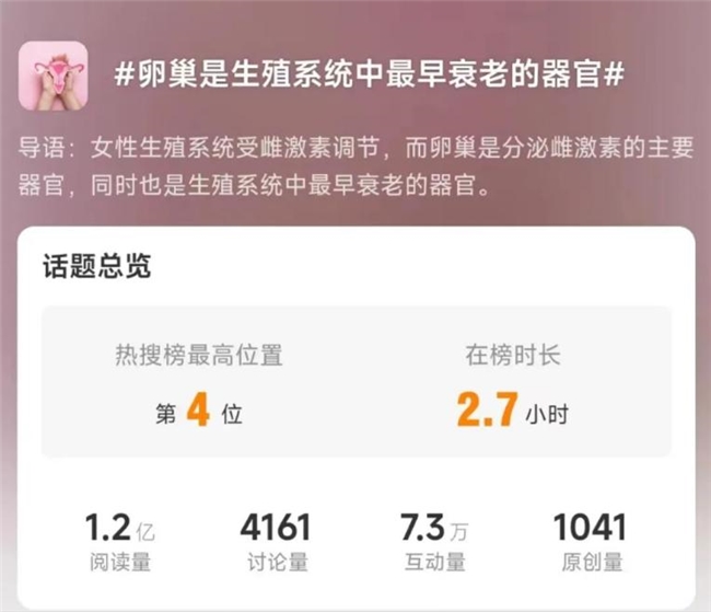 微博热搜“脸垮卵巢衰退”话题阅读量突破8000万,小红书“卵巢早衰年轻化”笔记超过50万篇。《中国女性卵巢健康白皮书》数据显示,中国卵巢功能减退人群正以每年15%的速度增长,30岁女性中近四分之一存在卵巢功能减退迹象。