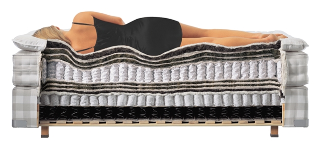 它的解决方案极难复制:上层铺满马尾毛、羊毛、棉花、亚麻等天然材质,下层搭配独立袋装弹簧系统。每一张床垫都在瑞典雪平工厂由匠师手工完成,马尾毛一层层铺叠,不压胶、不合成;独立袋装弹簧按身体不同区域的承重需求分区排列。